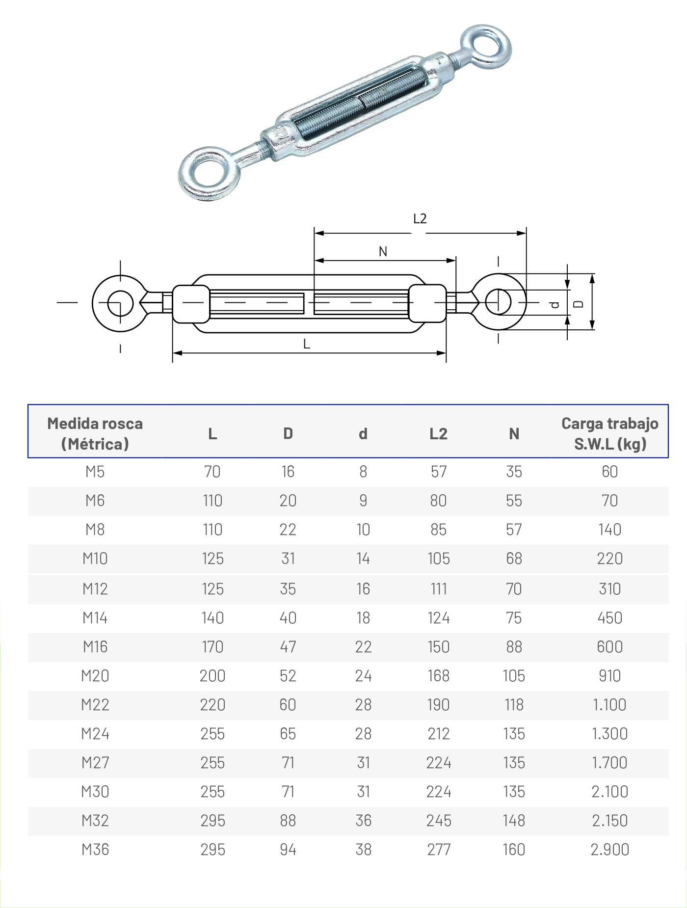 Tensor Abierto Anilla-Anilla de acero Cincado DIN-1480