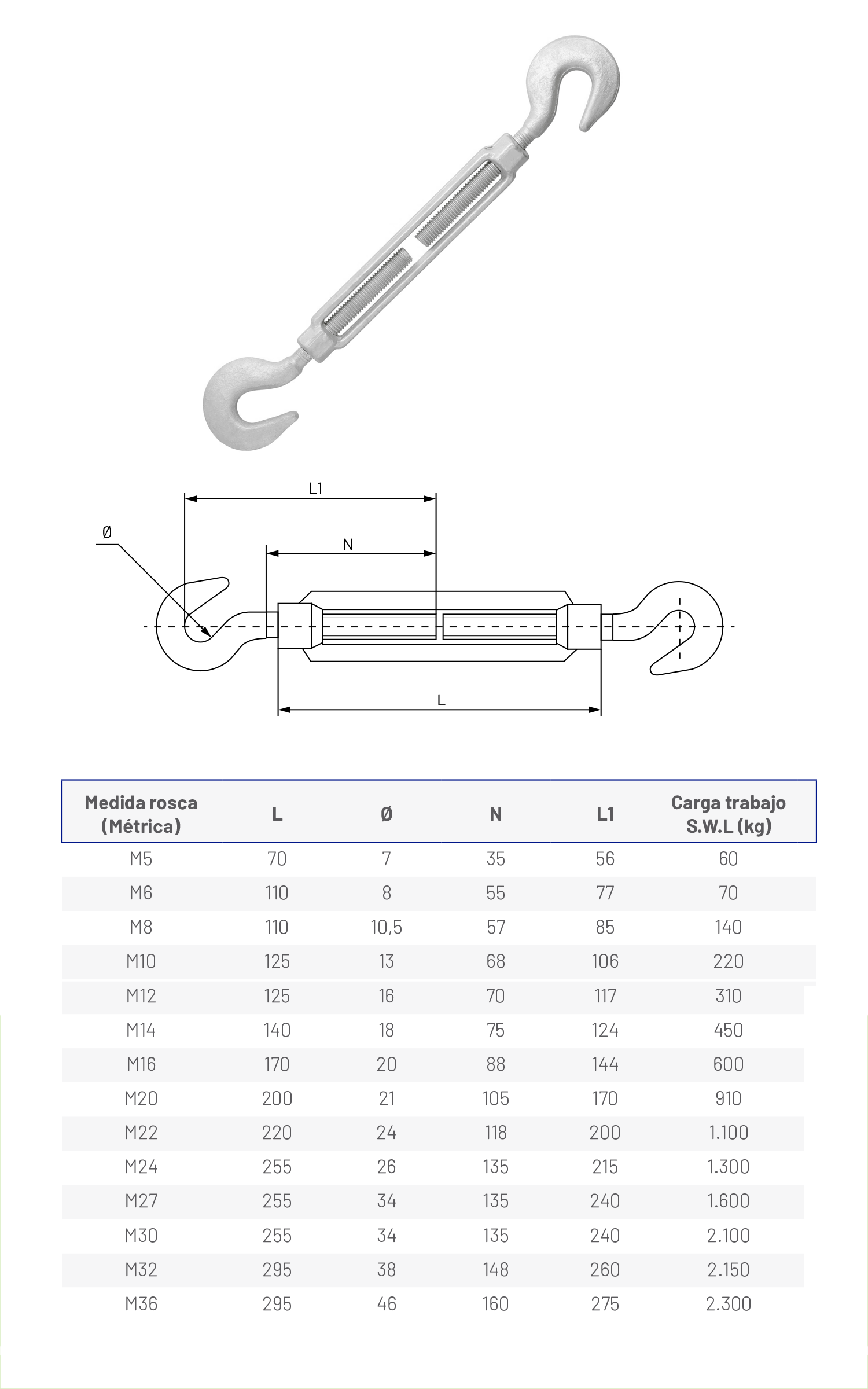 Tensor Abierto Gancho-Gancho de acero Cincado DIN-1480